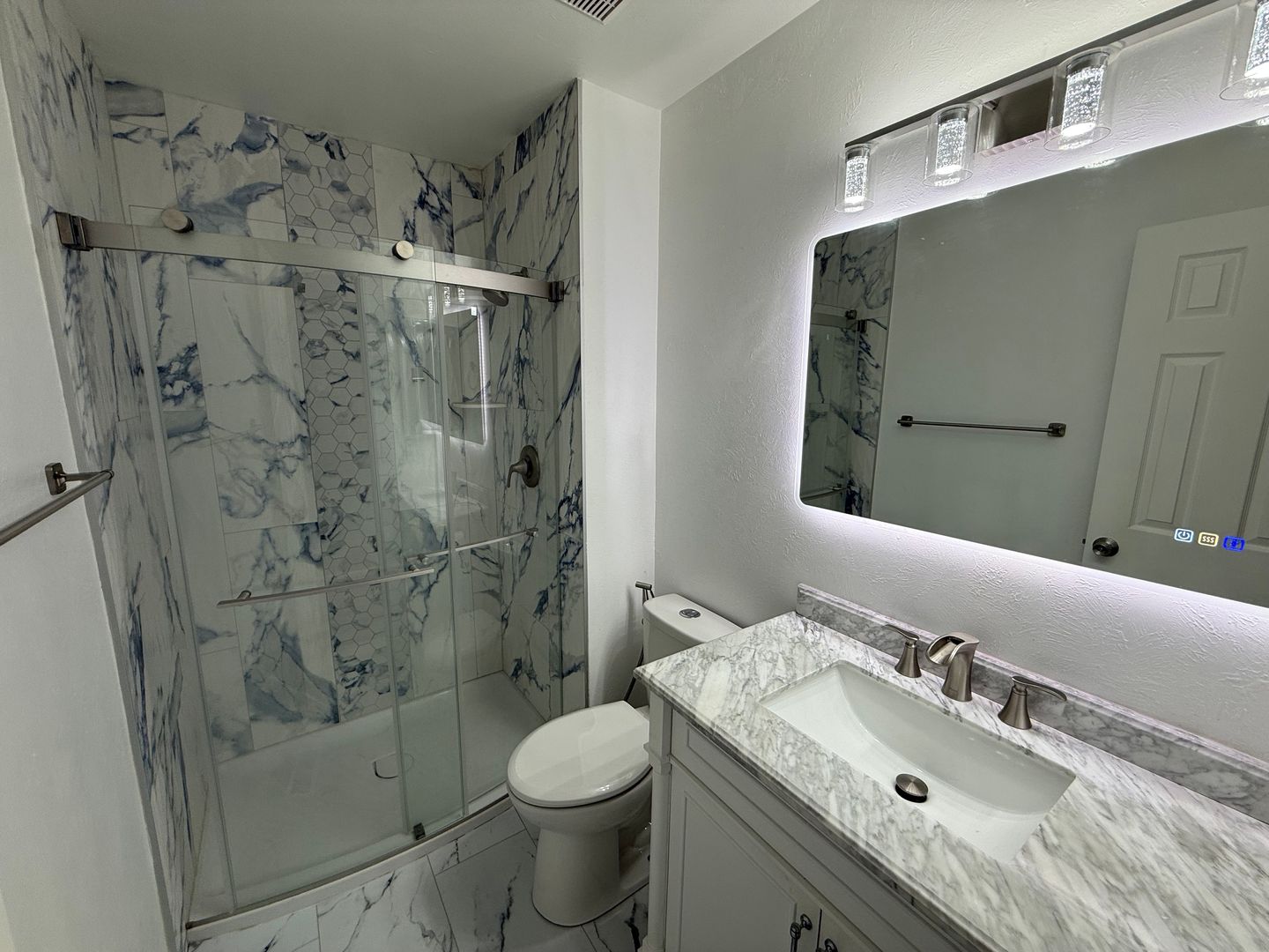 Enjoy the flexibility of two enclosed patios, ideal for relaxing, entertaining, or creating your own outdoor retreat. The kitchen is upgraded with granite countertops, and the home includes a washer and dryer in-unit for added convenience. The modern bathrooms feature sleek finishes, including anti-fog mirrors for a spa-like touch.